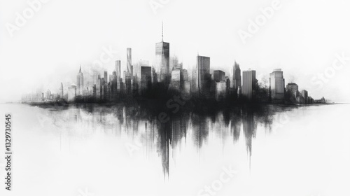 Fototapeta premium Monochrome City Skyline Drawing