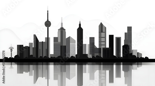 Fototapeta premium Monochrome Cityscape with Iconic Towers and Urban Reflection