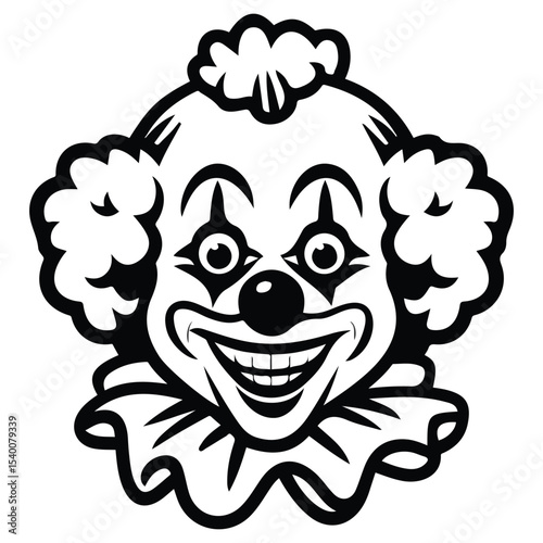 © azzedine, Obraz premium Monochrome clown face vector isolated white background