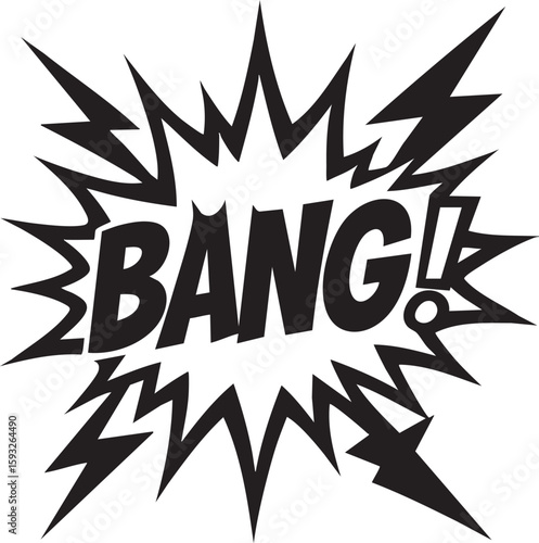 Fototapeta premium Monochrome comic book explosion with the word BANG! in a pop art style. Vector illustration of a powerful sound effect.