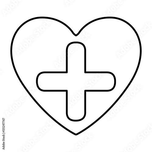 © Grgroup, Obraz premium monochrome contour with symbol cross in heart vector illustration