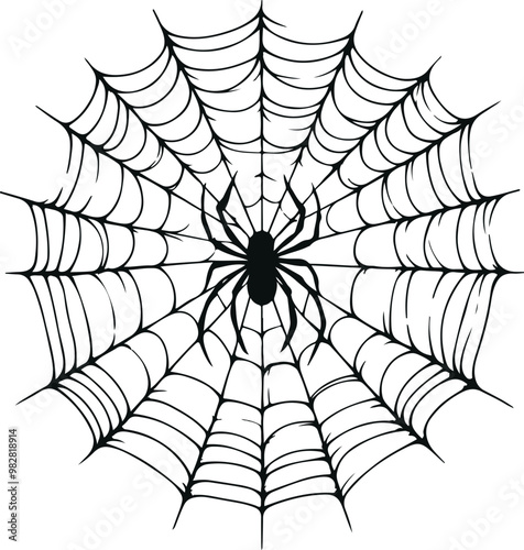 © Creative JM, Obraz premium Monochrome Cosmonaut Spider Web Icon Vector Illustration Design Silhouette Style
