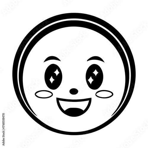 © Zyariss, Fototapeta premium Monochrome Cute Happy Emoji Face with Sparkly Eyes Vector Illustration