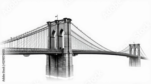 © Cloudy, Obraz premium Monochrome Depiction of the Brooklyn Bridge