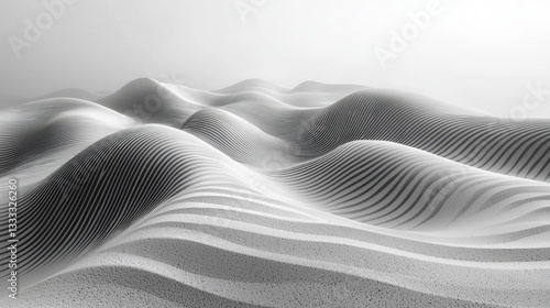 © Chano_1_na, Obraz premium Monochrome Desert Landscape with Soft Curves and Textured Patterns in Sand Dunes