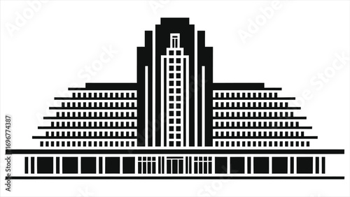 © Tanver, Fototapeta premium Monochrome Detailed Stylized Iconic Art Deco Hotel Vector Illustration - Vintage Retro Architecture Building Symbol for Graphic Design, Logos, Branding, and Creative Projects