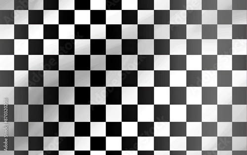 Fototapeta premium Monochrome digital illustration featuring a black and white checkerboard pattern, straight-on view, creating a high-contrast, symmetrical, and clean background.
