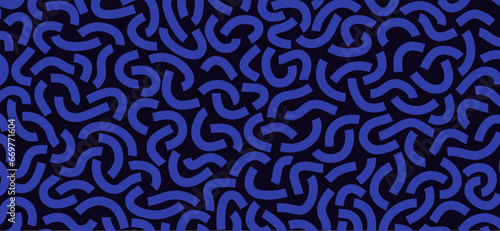 Fototapeta premium Monochrome doodle pattern. Funny monochrome pattern. Curved blue lines