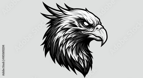 © jennifermasonia, Obraz premium Monochrome Eagle Wing Detail: Sharp Feathers and Intense Contrast