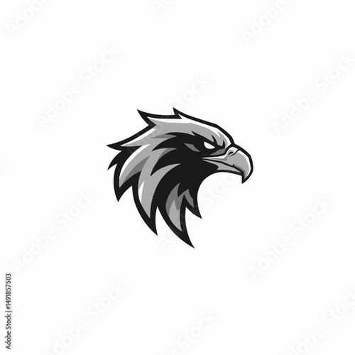 Fototapeta premium Monochrome fierce eagle head illustration on white