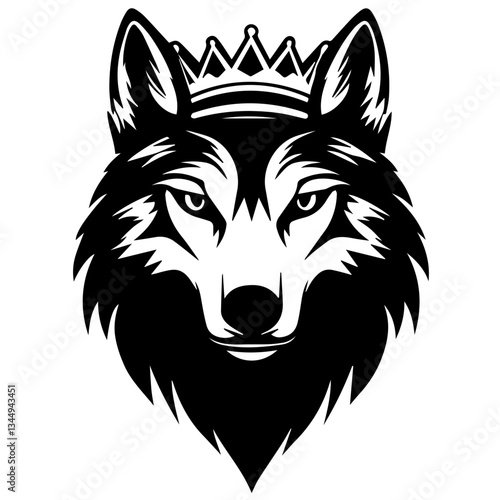 Naklejka premium Monochrome Graphic of a Crowned Wolf Head