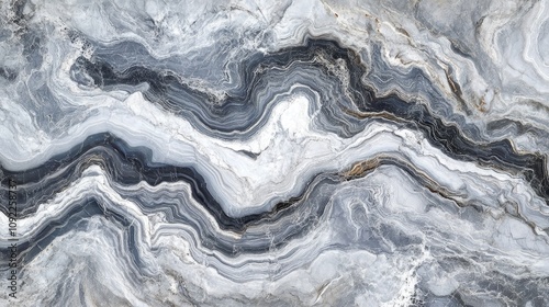 Fototapeta premium Monochrome gray abstract marble texture showcasing flowing waves and elegant...