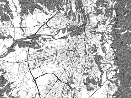 Naklejka premium Monochrome hand-drawn map of Girona, Spain, ideal for decorative and...