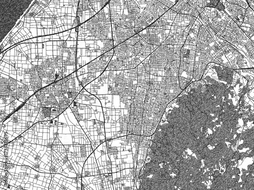 Naklejka premium Monochrome hand-drawn map of Nonoichi, Japan, ideal for decorative and...