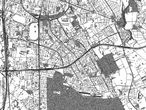 Naklejka premium Monochrome hand-drawn map of Ursynow, Poland, ideal for decorative and...