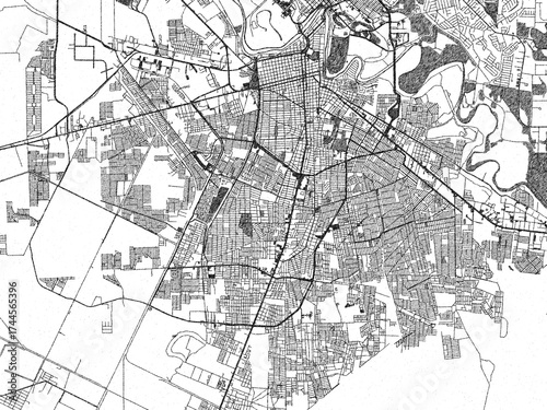 © W&S Stock, Naklejka premium Monochrome hand-drawn style map of Heroica Matamoros, Mexico, ideal for decorative and editorial use.