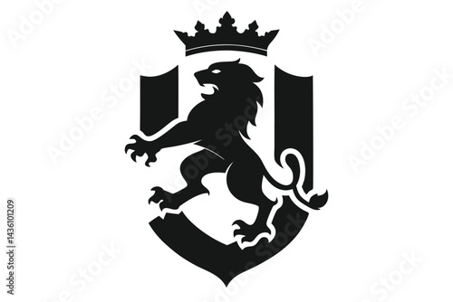 © AL, Fototapeta premium Monochrome heraldic emblem featuring a rampant lion below a royal crown