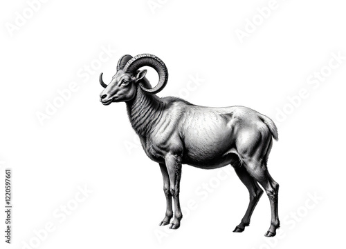 © thienhuong, Obraz premium Monochrome illustration of a ram with transparent background