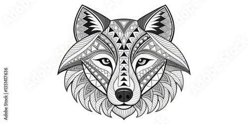 Fototapeta premium Monochrome illustration of a wolf head decorated with intricate geometric,...