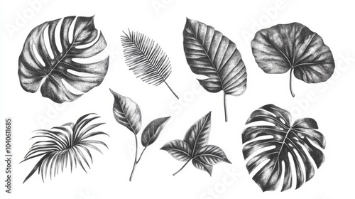 © Nicholas, Fototapeta premium Monochrome Leaf Illustrations
