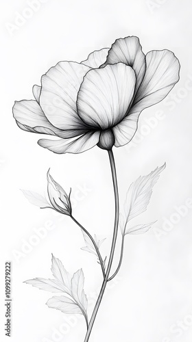 © Galaxyd, Fototapeta premium Monochrome line art drawing of a single poppy flower.