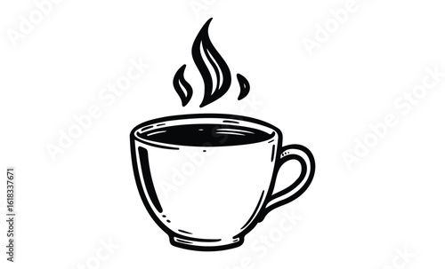 © Mr. Stocker, Obraz premium Monochrome line art of steaming coffee cup with handle. Vector retro hand drawn illustration