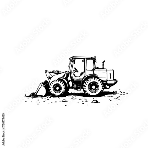 Naklejka premium Monochrome Loader Illustration Heavy Machinery Equipment Silhouette Isolated...