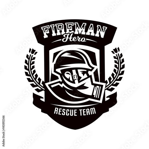 Obraz premium Monochrome logo, emblem, fireman in a gas mask.