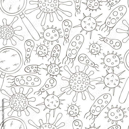 © bubushonok, Fototapeta premium Monochrome medical seamless pattern. Coloring pages, black and white