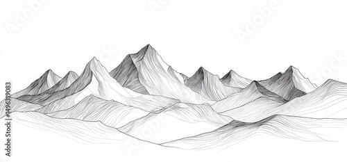 © Hadiyah, Fototapeta premium Monochrome Mountain Range Illustration