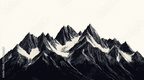 © marfuah, Obraz premium Monochrome mountain range isolated on white background.