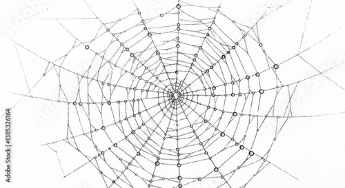 Fototapeta premium Monochrome Outline Spiderweb with Morning Dew
