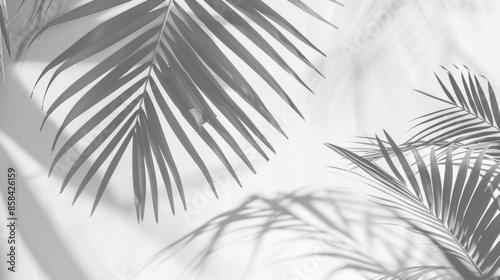 Obraz premium Monochrome palm leaf shadows on white wall