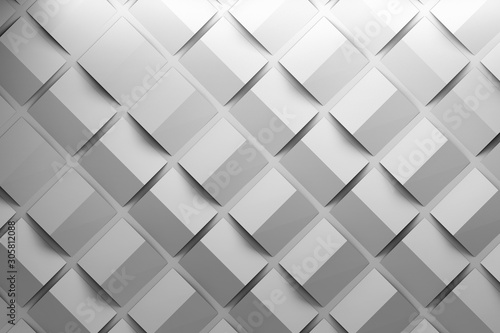 Fototapeta premium Monochrome pattern with folded squares. Repeating folded basic shapes. 3d illustration.