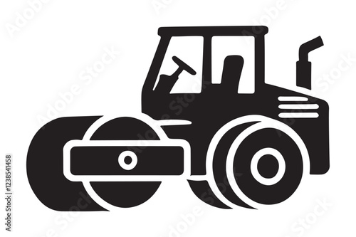 © Nasir, Obraz premium Monochrome Road Roller Silhouette Roadwork Machine Vector
