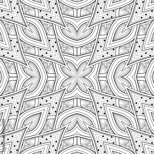 © irinakrivoruchko, Fototapeta premium Monochrome Seamless Pattern with Floral Ethnic Motifs