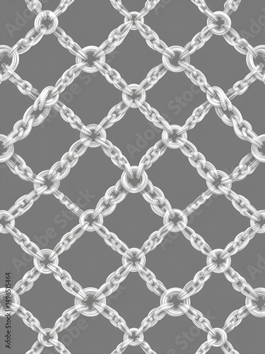 © John, Naklejka premium Monochrome Seamless pattern with intertwined chain. Design for fabric, covers, surfaces, textile. Silver Chains plexus on gray background. Tile for sportswear, swimwear,