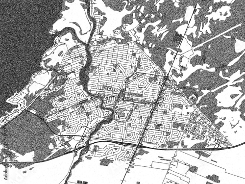© W&S Stock, Naklejka premium Monochrome sketch map of Châteauguay, Quebec, ideal for posters, prints, and travel design.