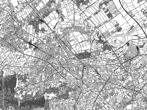 © W&S Stock, Naklejka premium Monochrome sketch map of Tokorozawa, Japan, ideal for posters, prints, and travel design.