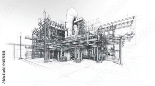 Obraz premium Monochrome sketch of industrial plant's complex infrastructure, showcasing...