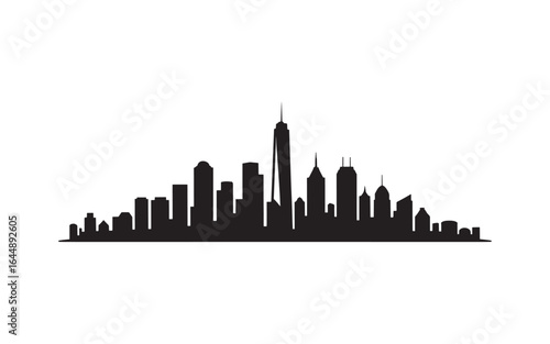 © Tanvir Khan, Fototapeta premium Monochrome Skyline Silhouette Cityscape Design Architectural Flat Design of City Buildings Minimalist Black and White Depiction Vector Illustration