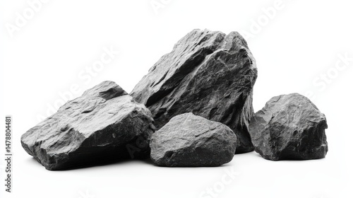 © Jeloart, Naklejka premium Monochrome stone arrangement with textures, shadows and clear background