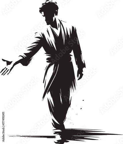 © Orion Draw, Fototapeta premium Monochrome sumi-e artwork depicting a man extending an offering