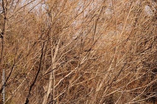 Fototapeta premium Monochrome texture of winter branches, bare during winter season.