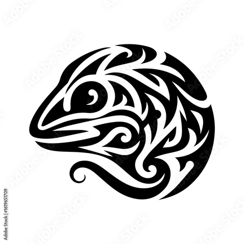 © Ari, Fototapeta premium Monochrome tribal lizard head silhouette