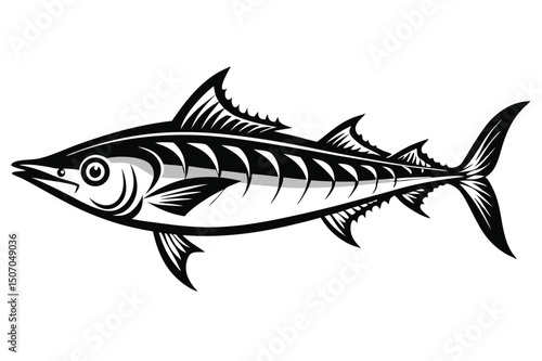 © kanchanrani, Fototapeta premium Monochrome Vector Illustration of a Striking Wahoo Fish with Detailed Fins and Tail