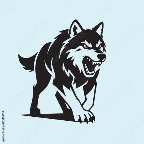Fototapeta premium Monochrome vector wolf, snarling logo design, minimalist art, transparent...