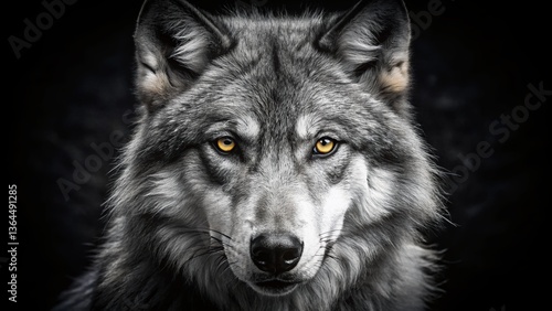 © thataroth, Obraz premium Monochrome Wolf Portrait: Sad Eyes, Night Photography