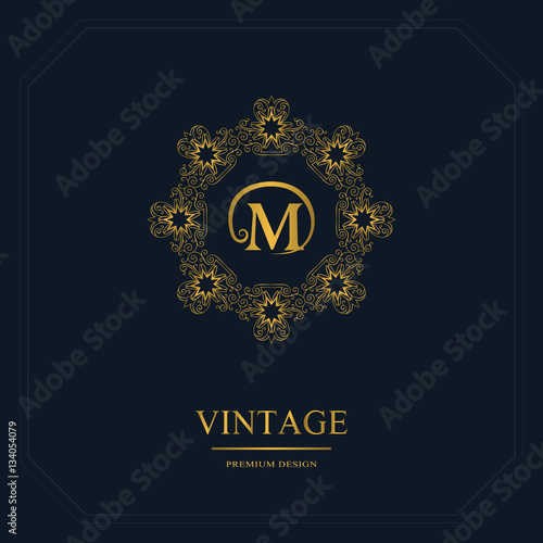 Naklejka premium Monogram design elements, graceful template. Calligraphic elegant line art logo design. Letter emblem sign M for Royalty, business card, Boutique, Hotel, Heraldic, Jewelry. Vector illustration