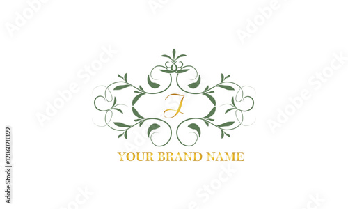 Fototapeta premium Monogram frame. Classic decorative element with letter I and place for text. Letter pattern.